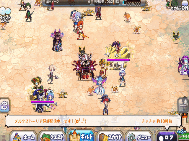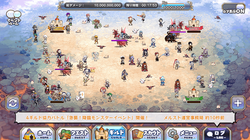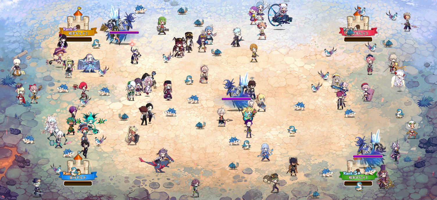 4ギルドのメンバーで協力して、フィールドに出現するモンスターを癒やす(メルストでは、モンスターは倒すのではなく癒やす)イベントです。