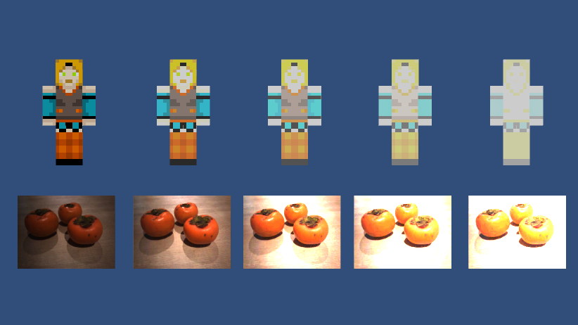 今回は、末尾に記載の資料を参考に、RGBを一旦HSVにして、Vを調整して、再度RGBに戻すという方法で検証しました。