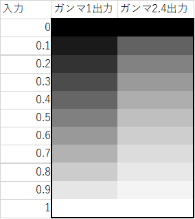 Unityでの検証に移る前に、上記の結果について少し補足しておきます。ガンマの値が1である=リニアである、ということになります。
