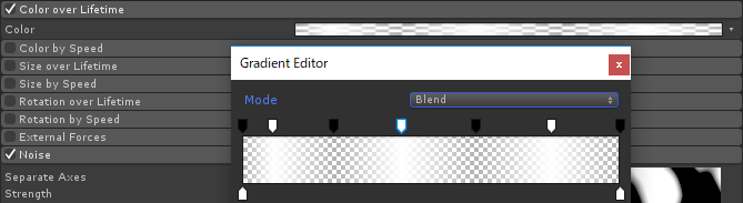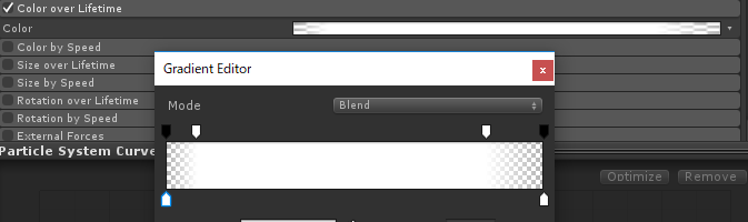 ●Color over Lifetimeで生成と消失にアルファで見えなくなるようにする